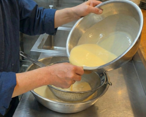 幾度もの裏漉しと、卵黄を見極める±0.5℃の緻密な火入れが、素材の風味と極上のなめらかさを引き出します。